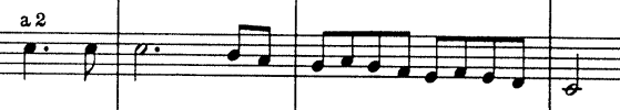 A figure of a military-style dotted crotchet-quaver-dotted minim followed by a descending quaver sequence