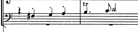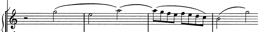 A six-note rising scale of crotchet-crotchet-crotchet-dotted crotchet (with trill)-quaver-minim