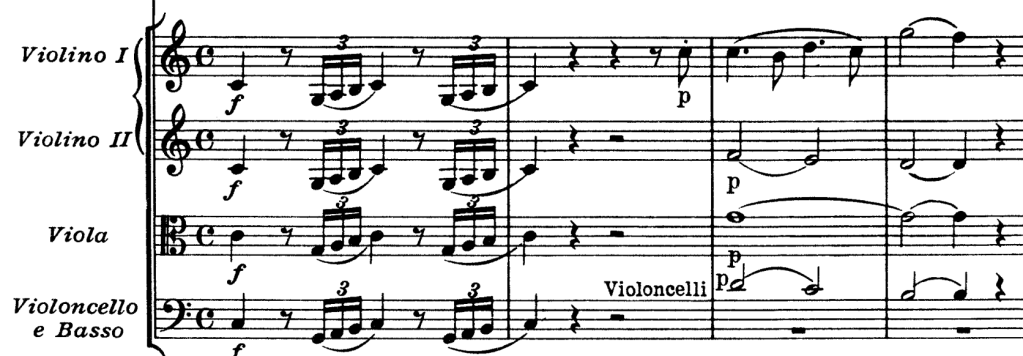 The third movement is the usual combination of Minuet and Trio (older listeners may recognise this due to the cover by The Wombles…). The trio starts with a perfect cadence (i.e. the ‘wrong’ chord), which echoes the opening chords of Beethoven’s Symphony No.1.